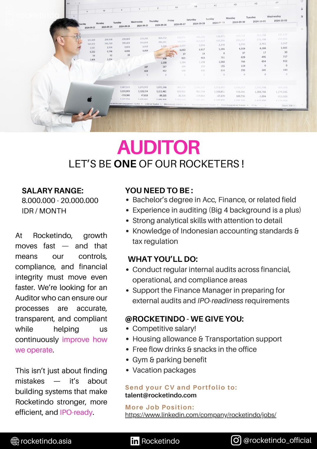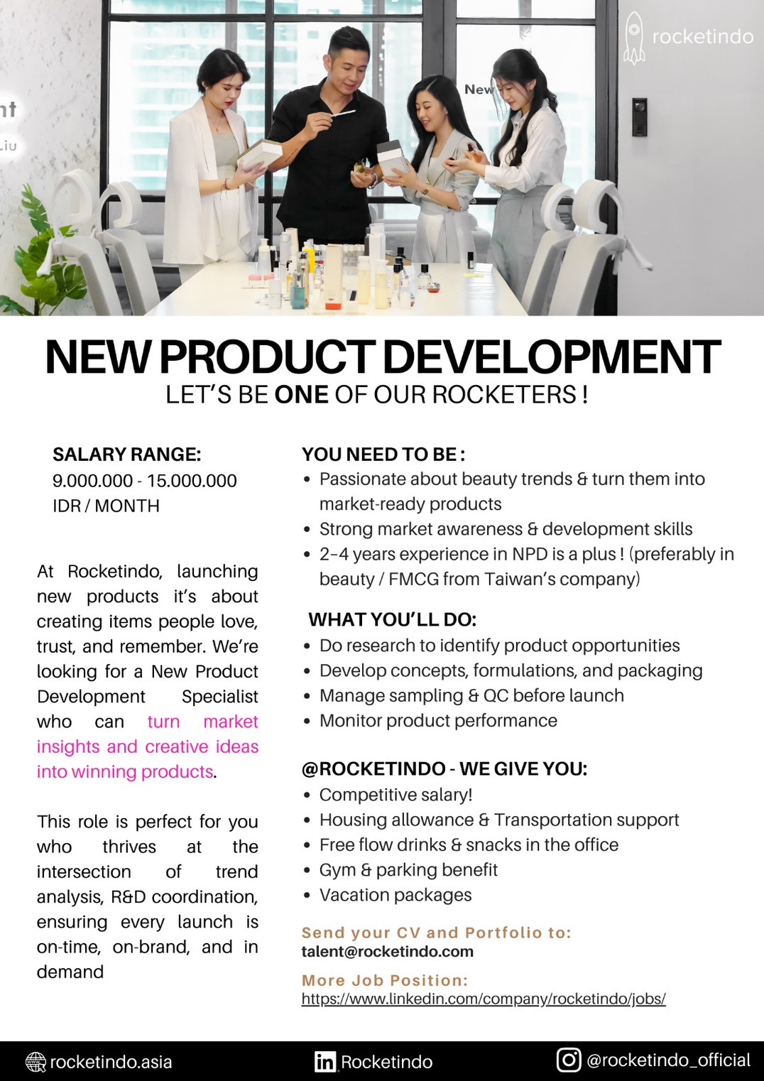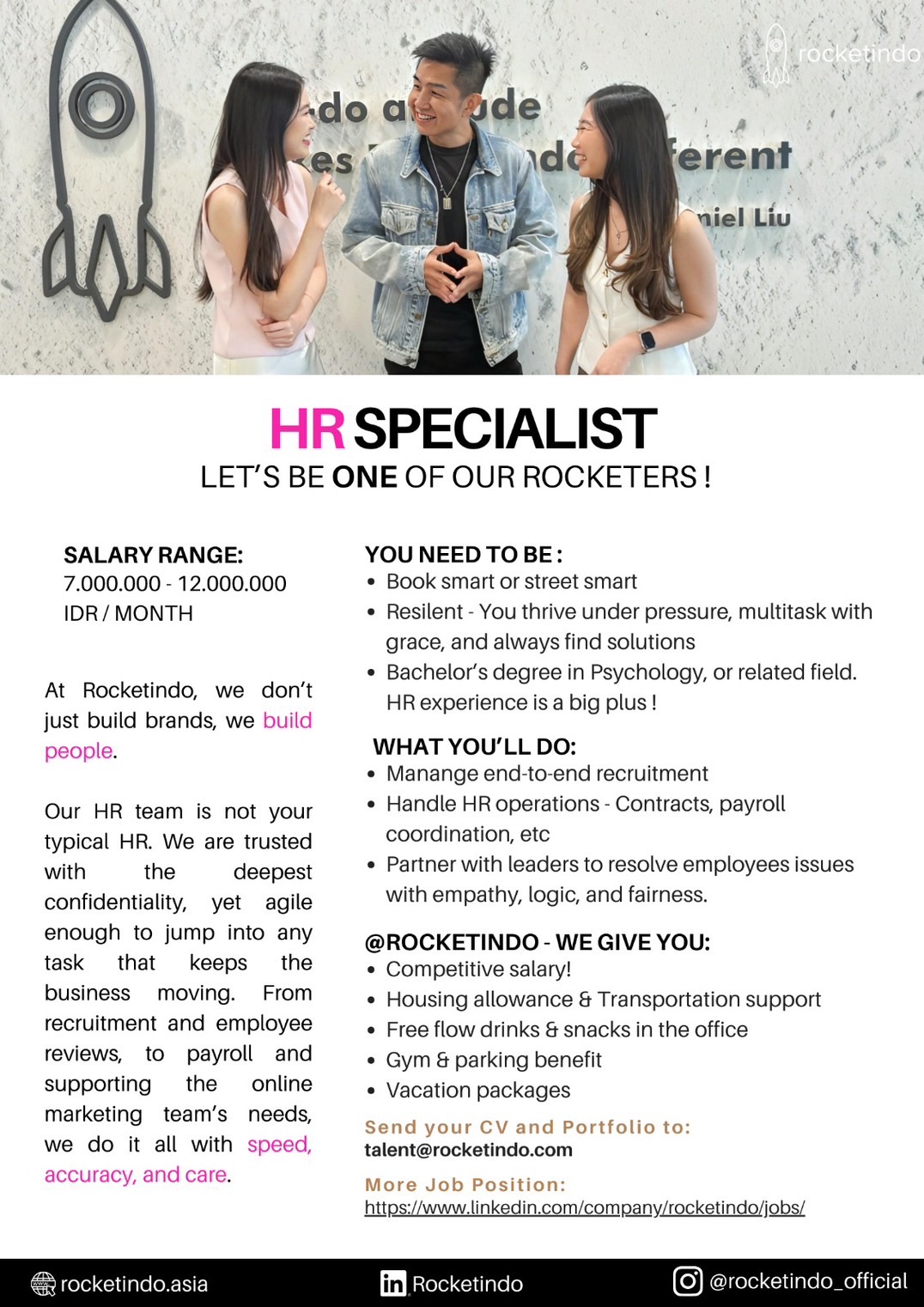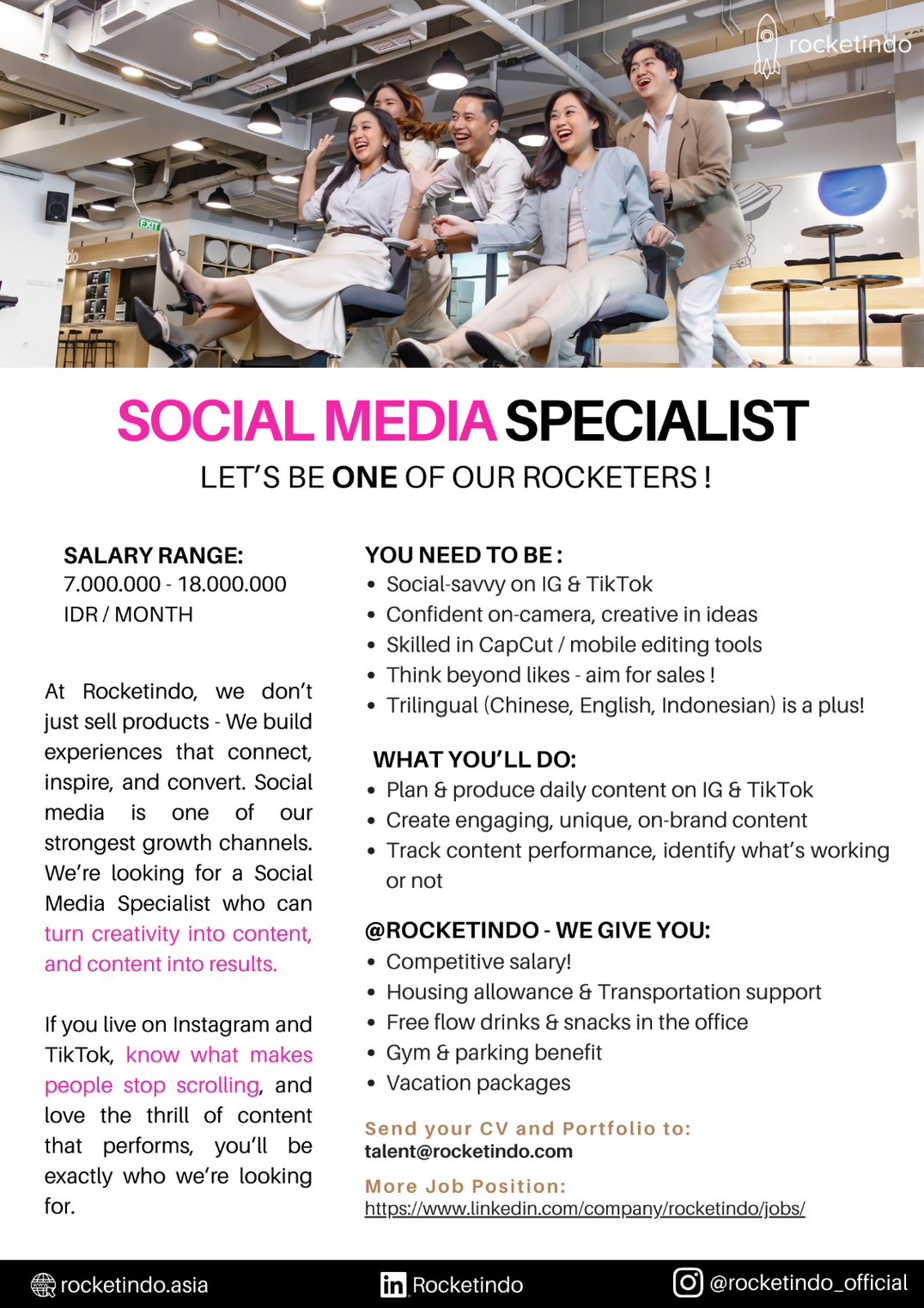 申請方式:請將履歷(英文/印尼文尤佳)寄至:talent@rocketindo.com(請在信件中註明您希望面試的職位)